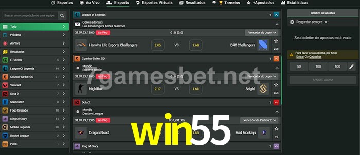 A aposta win55 oferece aos jogadores a experiência mais conveniente de apostas em eSports!